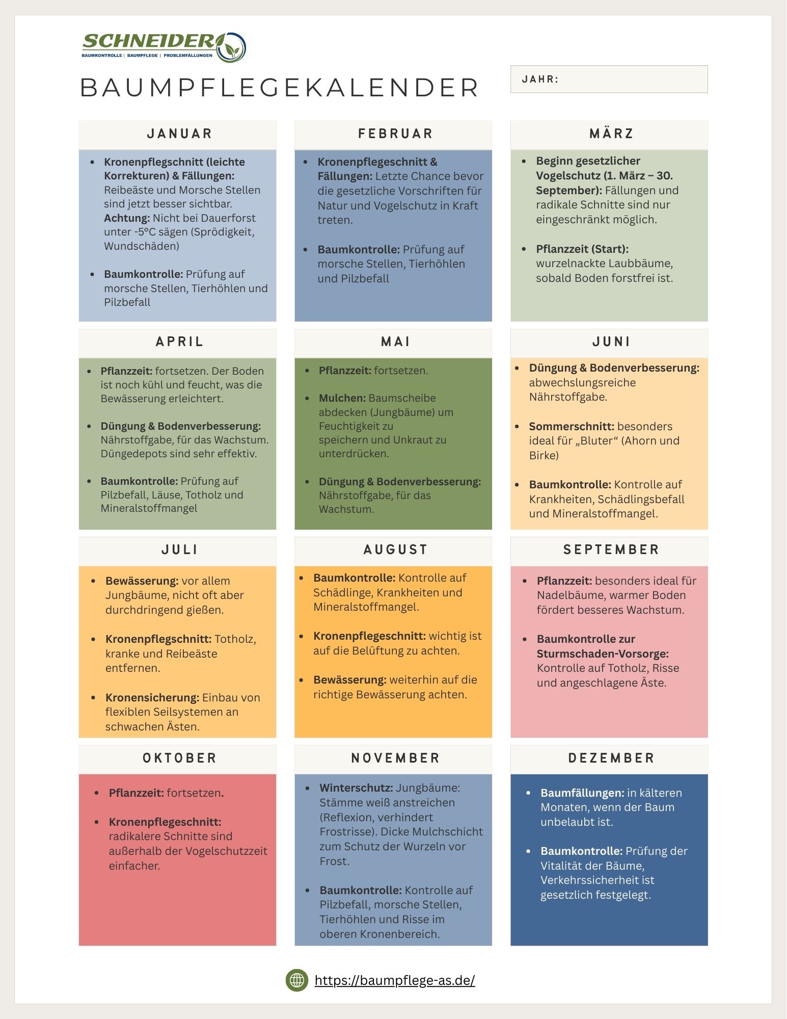 Unser Baumpflegekalender dient Ihnen zur Übersicht der Baumpflege im Jahresverlauf.